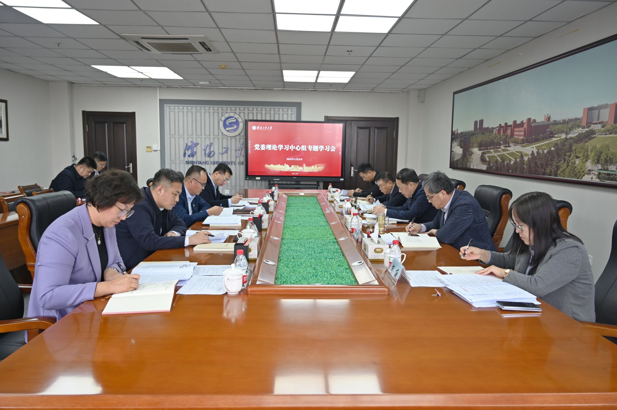 11月26日下午,学校党委召开理论学习中心组专题会议,深入学习习近平同志《论教育》、习近平总书记致中山大学建校100周年的贺信精神、全省市厅级主要领导干部学习贯彻党的二十届三中全会精神专题研讨班精神、全省教育大会精神等内容,研究部署学校相关工作。党委书记贾玉明主持会议并讲话,党委理论学习中心组成员张珂、陈卫国、柯丽、孙秋野、臧喜民、夏明超、王彪、李媛媛参加学习。
