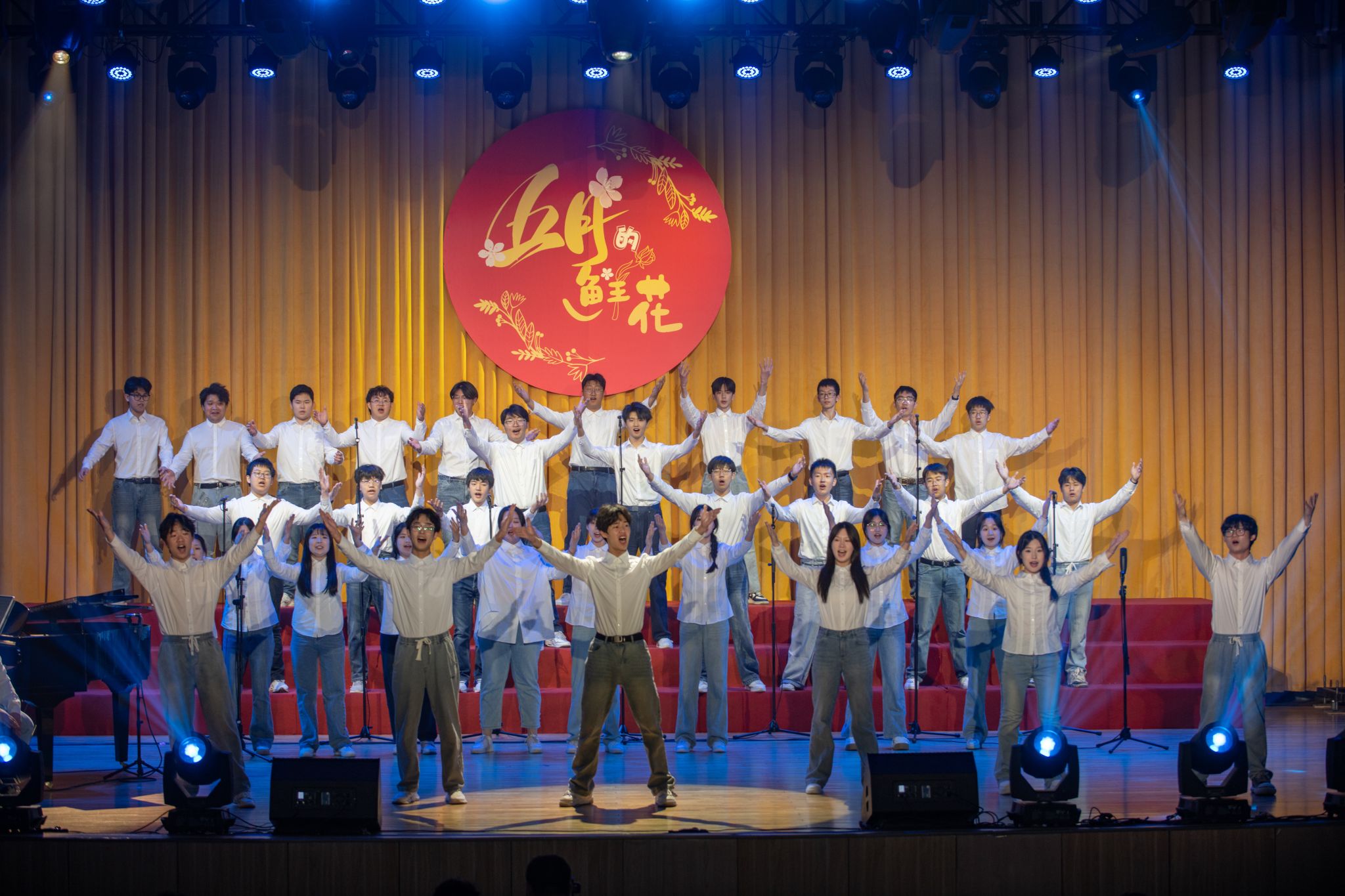 音乐会以混声合唱《越人歌》悠扬开场,男声合唱《像你一样》以铿锵有力的和声展现少年英姿,而小组唱《音乐多美妙》则用欢快节奏点燃观众的热情,《但愿人长久》借苏轼名篇诉说绵绵情思。混声合唱《世界赠予我的》 《夏天的梦是什么颜色的》用温暖旋律传递着对生活的感恩,诠释了青春的理想与追寻。二重唱《春花秋月何时了》与《蝶恋花·槛菊愁烟兰泣露》将千年词韵谱成新声,古典与现代的完美交融成为舞台的亮点,男声合唱《听海》配以海浪鼓的独特音效,仿佛将碧波万顷带到现场,《追寻》的恢弘旋律致敬初心,《有我》的坚定和声彰显青年担当,《星辰大海》的澎湃歌声则将晚会推向高潮。当《海阔天空》的经典旋律响起,全场观众情不自禁跟唱。最终,全体合唱《Try Everything》以充满活力的歌声,为这场艺术盛宴画上圆满句号。